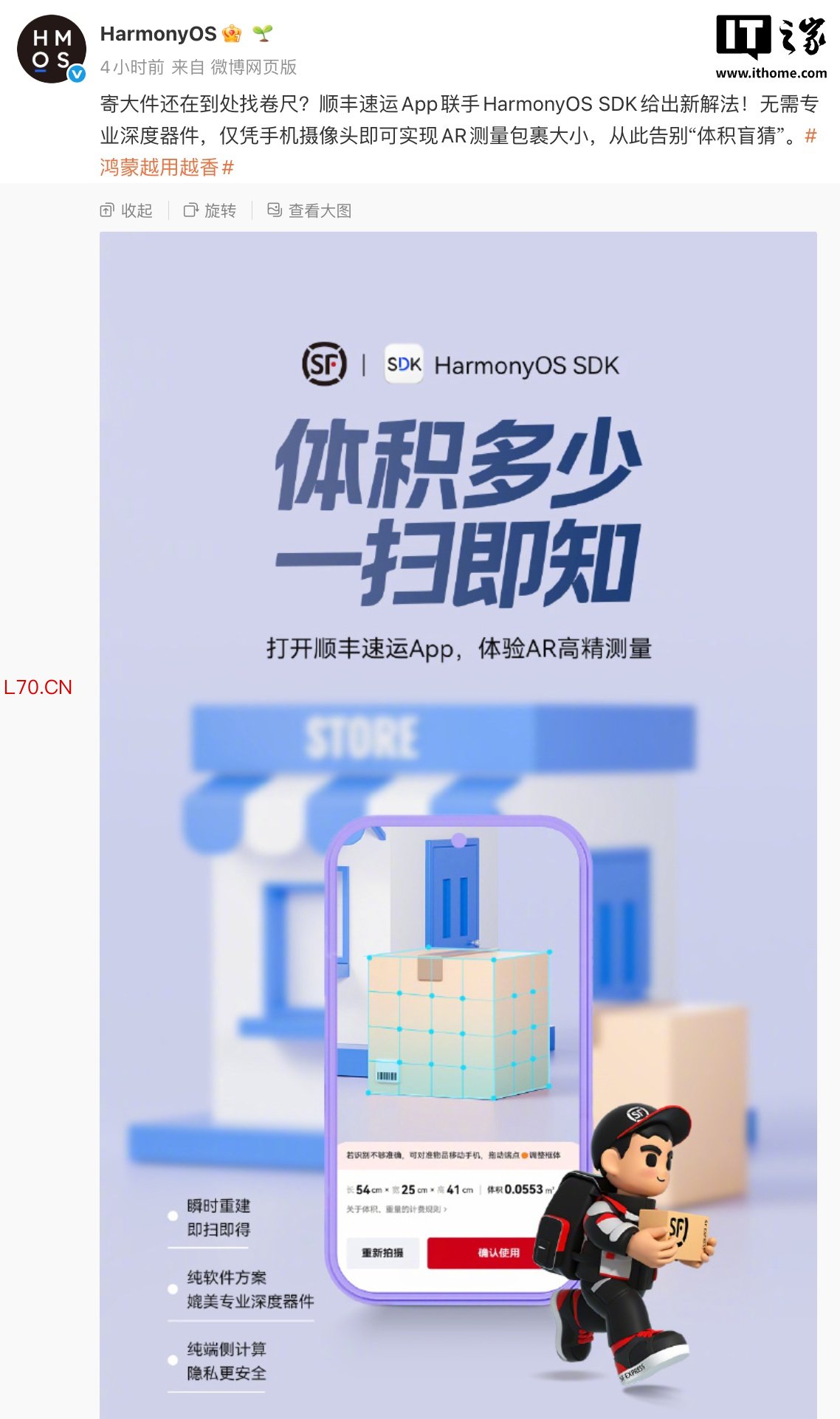 顺丰速运 App 联手华为鸿蒙 HarmonyOS SDK,上线 AR 测量包裹体积智能算运费功能