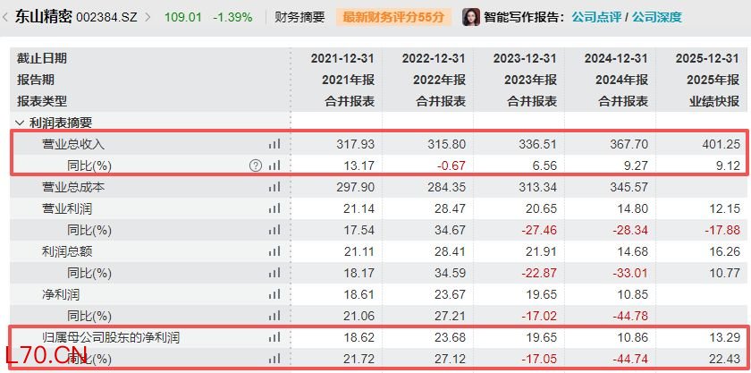 图片来源:东山精密2025年业绩快报