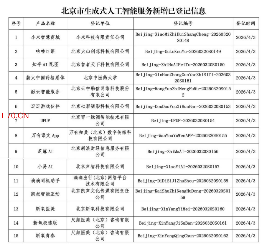 北京市新增15款已完成登记的生成式人工智能服务 芝麻AI上榜