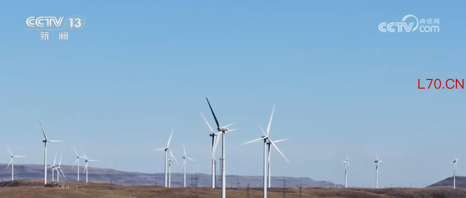 目前,整个园区共有30万千瓦的新能源装机。其中,风力发电是20万千瓦,光伏发电是10万千瓦。在整个山坡上共布设了26架风机,单个的高度就超过了120米。它们转一圈就能产生大约14度的绿电,在风力充沛的情况下,几秒钟就能转一圈。
